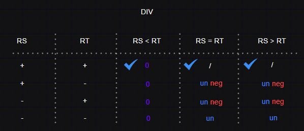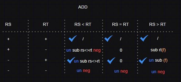 I didn’t realsie the logic for +, -, * and / would be so complex. I made a point to myself to sit down and map out myself how all of the scenarios would work, with number 1 (rs) being smaller, equal to or larger than number 2 (rt) for +, -, * and / when both are positive, one is negative, the other is negative, and both are negative. Most scenarios couldn’t be tested from how the script works, but the ones that could be tested were, and they came out correctly.