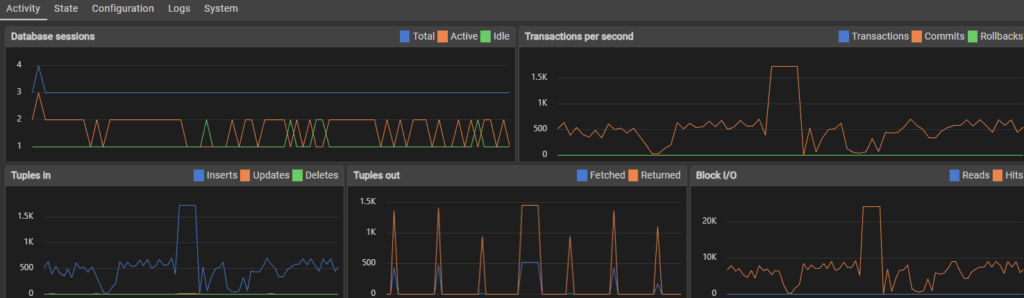 PostgreSQL kept crashing around 24k inserts. I turned on the SQL’s logging feature inside the container and reloaded PostgreSQL to see transactions per second. 600+ Transactions per second initially seen. Est 27-28 minutes for 1 million users to sign up.