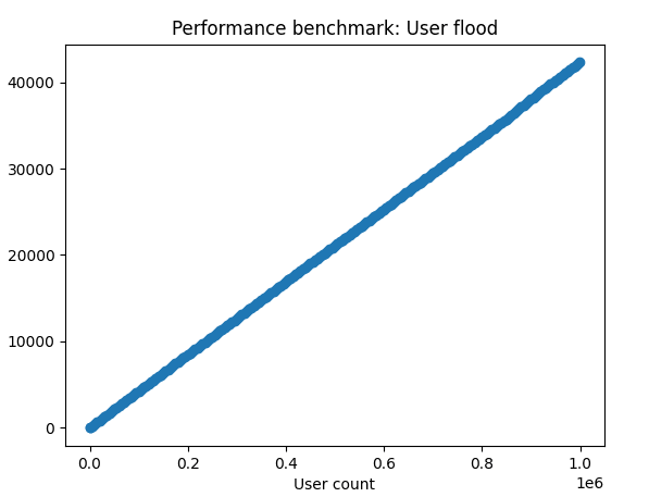 580,000 inserts later and the server held steady until the full million users were added.