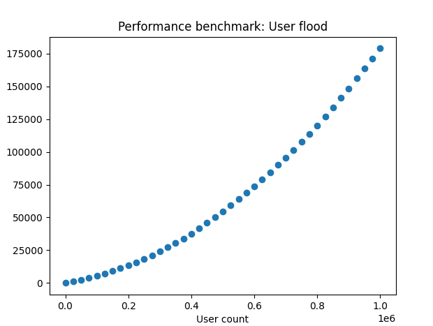 1: As the increased time is a direct result of user simulation, it would probably be much faster if the random user activity was one script, and the user flood was another. This would be an interesting test to benchmark and measure against previous results.